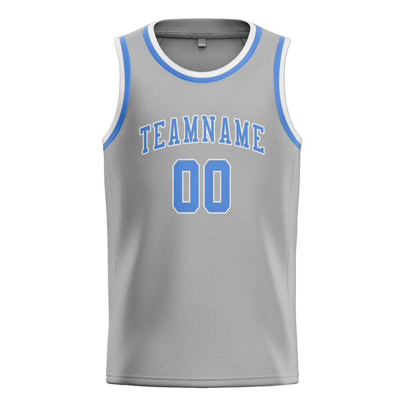 Custom Gray Light Blue Basketball Jersey