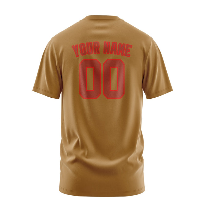 Custom Khaki Coral Red T-Shirt