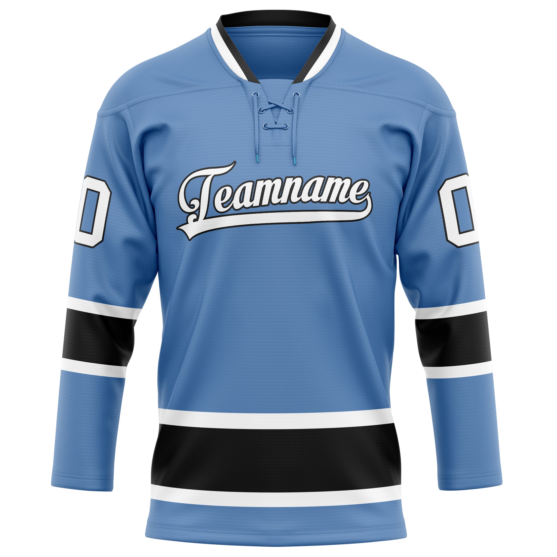 Custom Light Blue Black Solid Colour Hockey Jersey