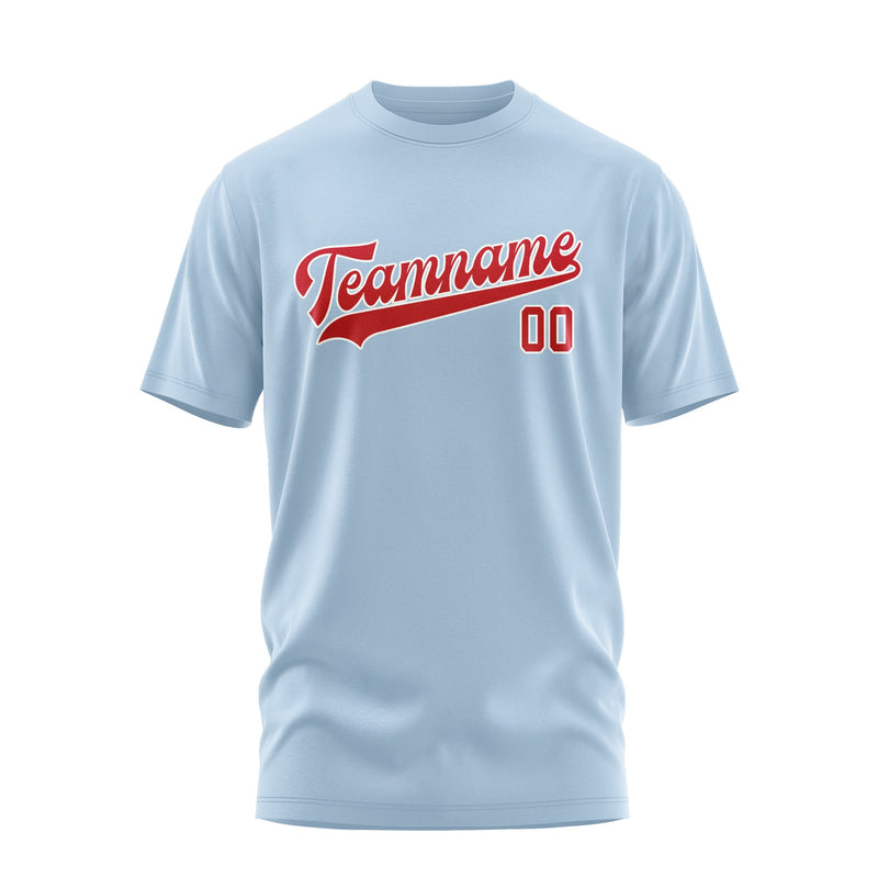 Custom Light Blue Red T-Shirt