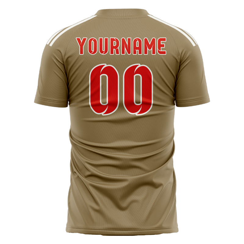 Custom Light Khaki Orange Red Soccer Jersey
