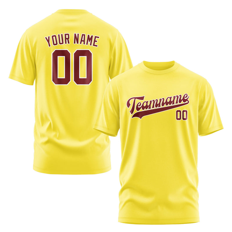Custom Light Yellow Crimson Red T-Shirt