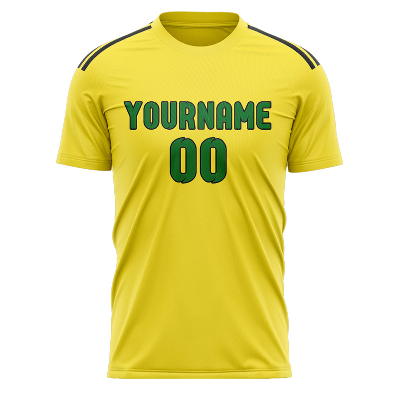 Custom Light Yellow Emerald Green Soccer Jersey