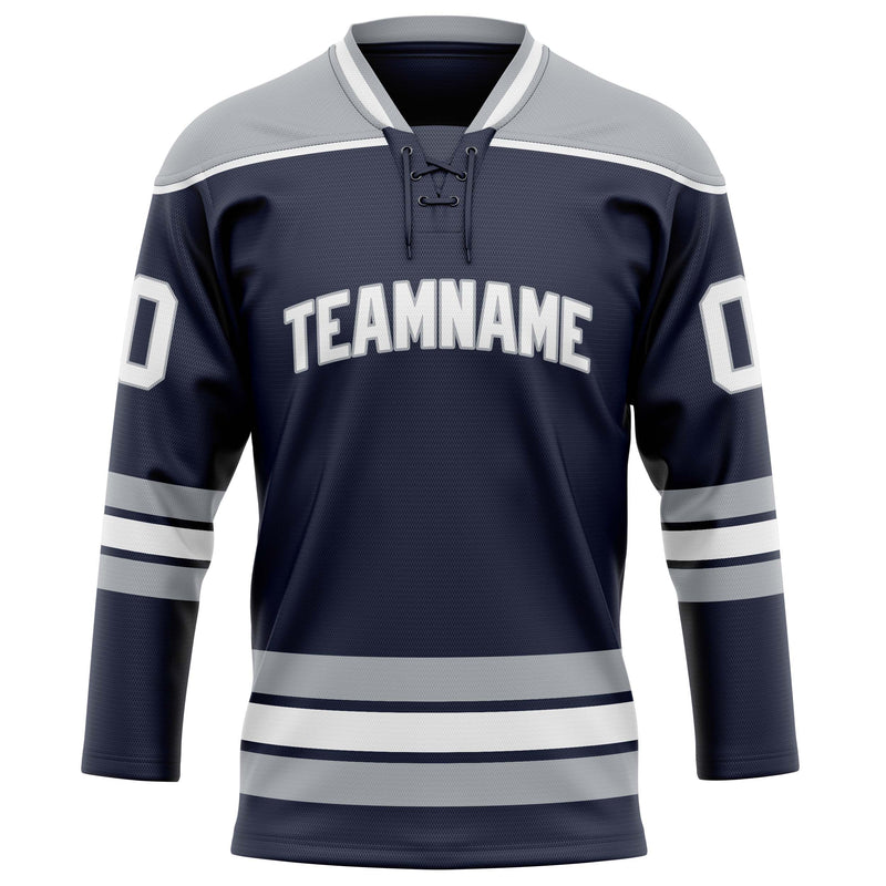 Custom Navy Gray Solid Colour Hockey Jersey