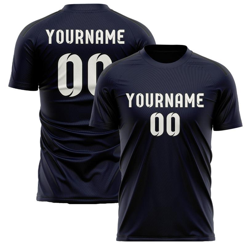 Custom Navy White Soccer Jersey